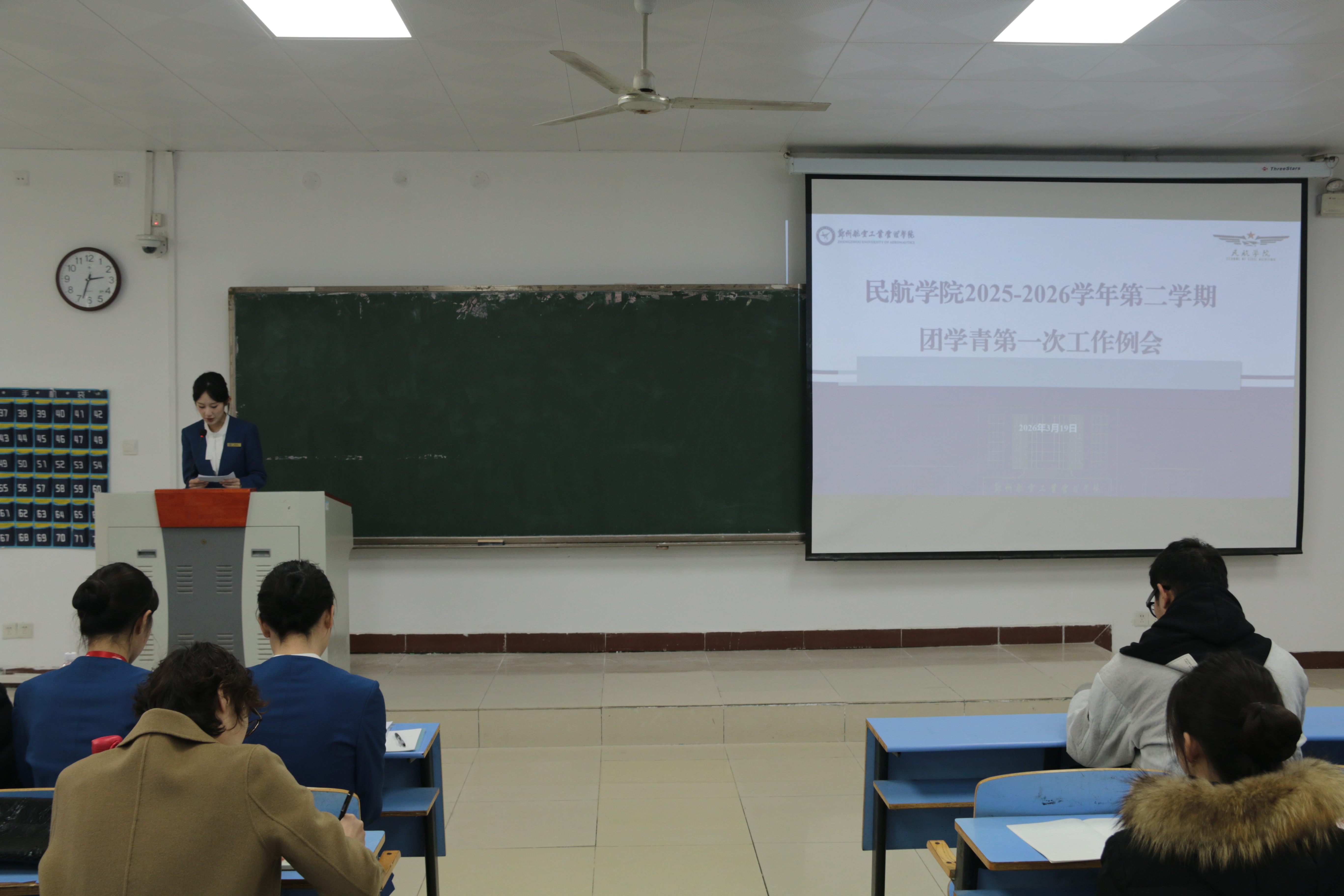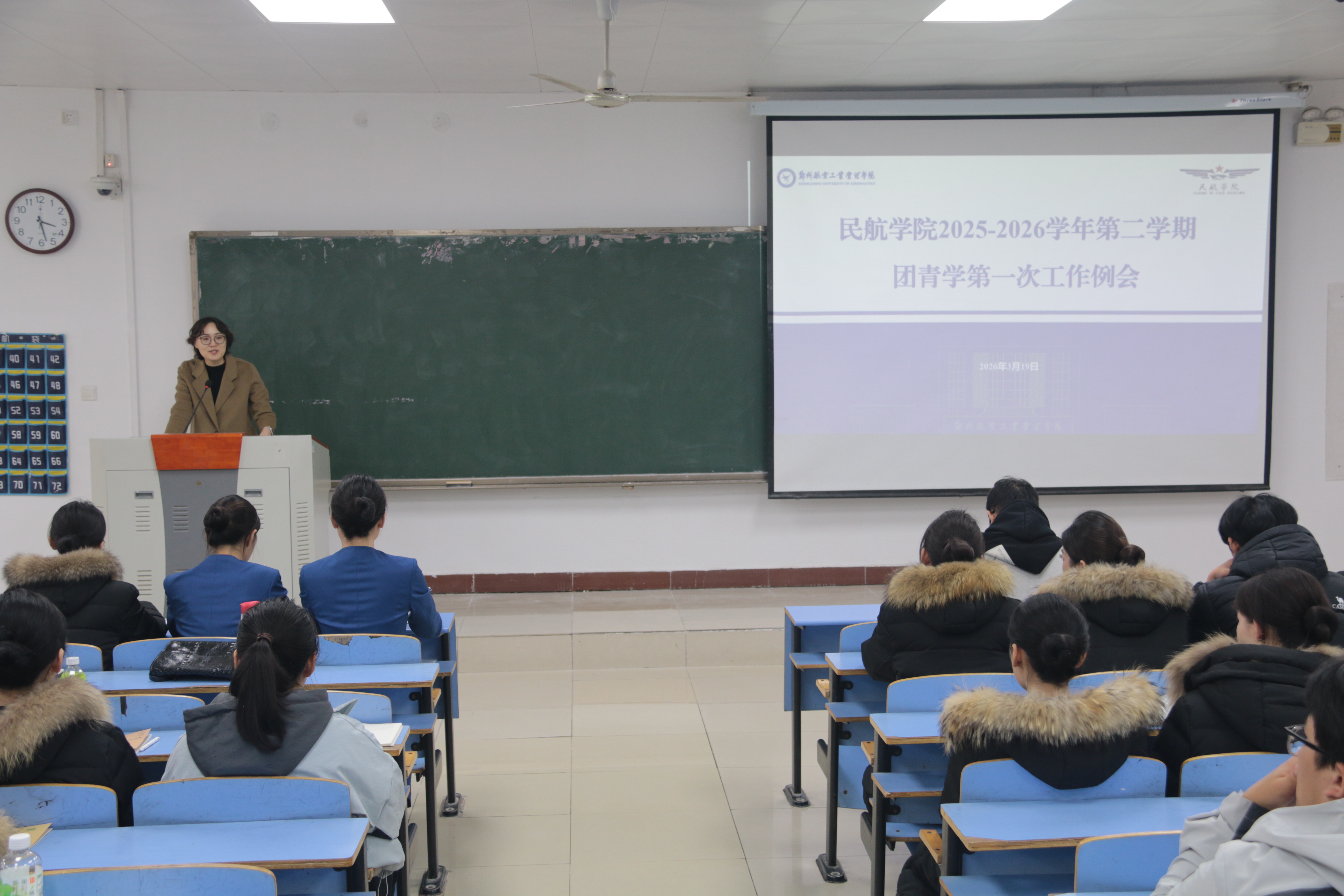 3月19日,我院 2025-2026 学年第二学期团学青第一次工作例会在 01B106 室召开。分团委书记杜悦出席会议并作总结讲话,分团委、学生会主席团、青年志愿者团等相关部门全体学生干部参会,会议由我院《青听》工作室韩玥同学主持。