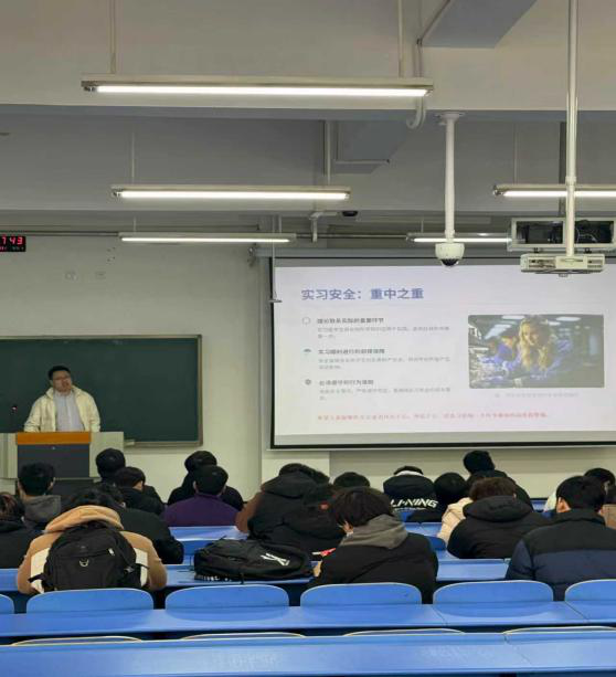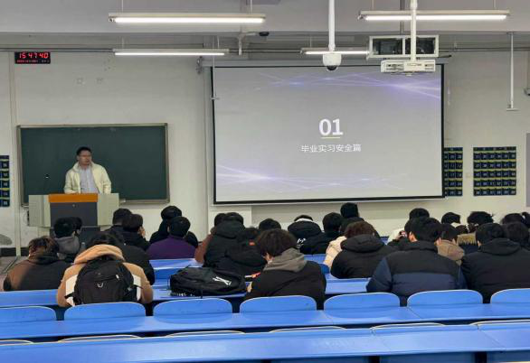 会上,姚飞老师以“毕业实习安全篇”为开篇,强调实习是理论联系实际的关键环节,更是学生从校园走向社会的重要过渡。他从“实习顺利进行的前提保障”、“必须遵守的行为准则”等维度,深入剖析实习安全的重要性,并进行了相关应急知识的培训,强调安全无小事,要求同学们将安全意识内化于心、外化于行,在实习的每个环节都要高度重视安全。