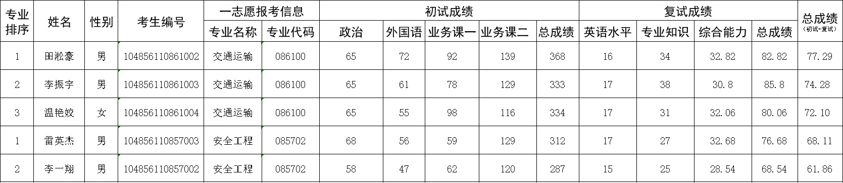 民航学院2026年硕士研究生招生复试(一志愿)成绩公示